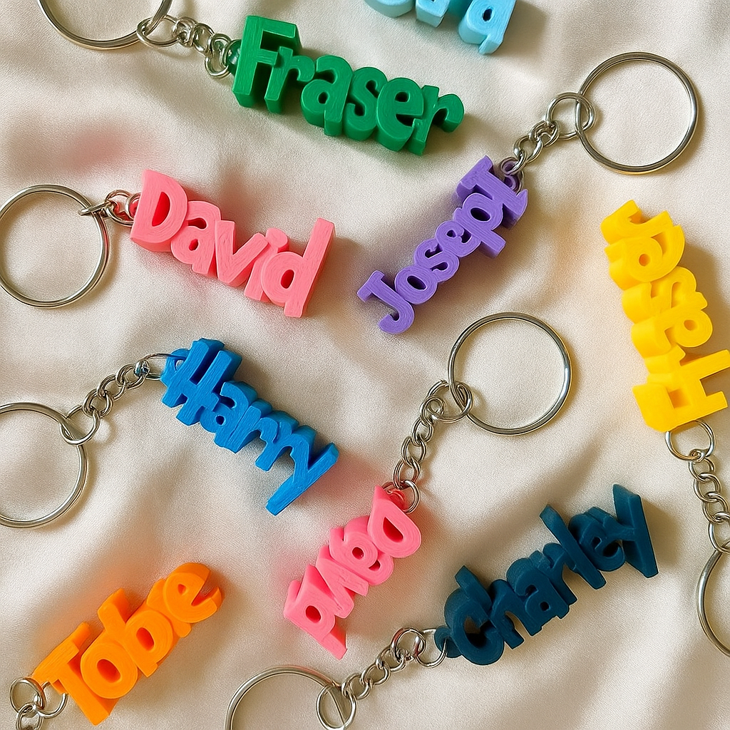 Our custom 3D Name Keychains are uniquely designed, expertly 3D printed, and made just for you. Whether it's your name, a loved one’s, or even a nickname, we transform it into a bold, vibrant keychain that reflects your personality and style.
